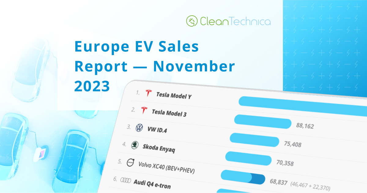 Approximately 274,000 plugin vehicles were registered in November in Europe, down 2% year over year (YoY), the market’s first drop since July 2022. The overall market grew by 6% in what wasn’t a good month for plugins on the continent.