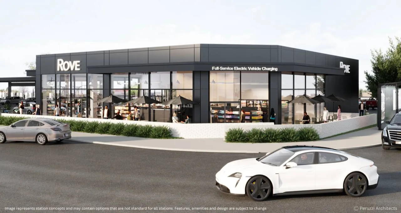 The California startup Rove broke ground last week on the first of 20 amenity-packed EV charging stations—each with 40 fast-chargers delivering all three interfaces, plus wifi, a lounge, a car wash, and a mini grocery store. Is this what the future of charging should be?